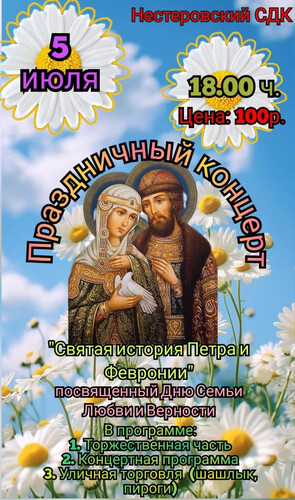 Сообщаем Вам, что в соответствии с Указом Президента РФ "О мерах социальной поддержки многодетных семей" от 23.01.2024 г. №63, на основании Закона Рязанской области "О внесении изменений в Закон Рязанской области "О мерах социальной поддержки населения Рязанской области" от 19.04.2024 г. №25-03, многодетные семьи имеют право на БЕСПЛАТНОЕ посещение мероприятий, организованных Нестеровским СДК.
